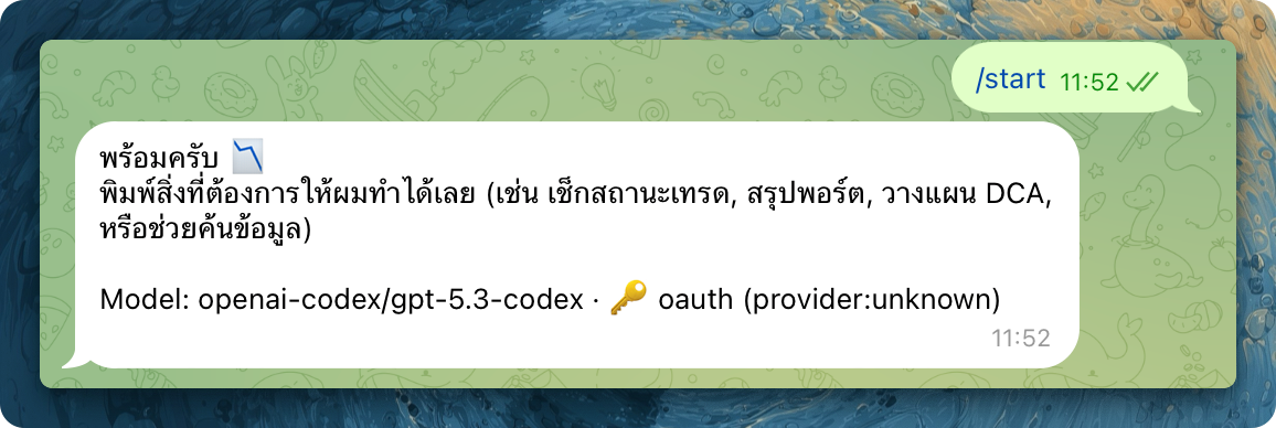 OpenClaw ออกแบบมาให้เราสั่งงานผ่านแอปแชทที่เราใช้กันอยู่ทุกวันได้เลย (เช่น WhatsApp, Discord, Slack) แต่วิธีที่ได้รับความนิยมสูงสุดและต่อง่ายที่สุดคือ Telegram Bot เพราะแค่ไปสร้างบอทผ่าน @BotFather เอา Token มาใส่ ก็ได้ผู้ช่วยส่วนตัวทันที